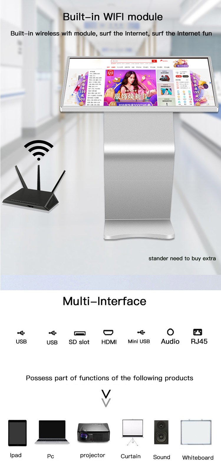 Big size All in One PC Android Tablet Advertising Kiosks 43 Inch Advertisement monitor