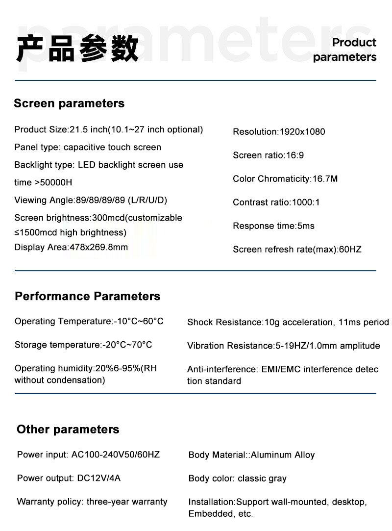 | 触摸 | 10 点电容触摸 | |